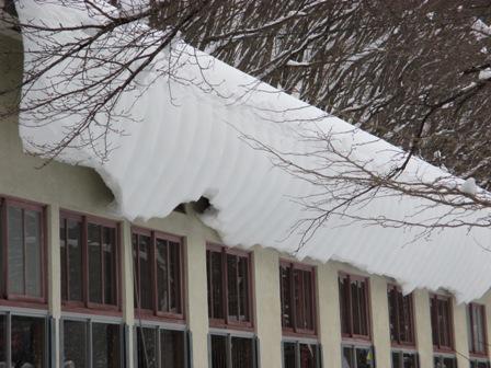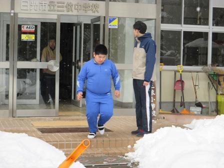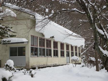 暖冬の日本列島が全国的に突然の大雪に見舞われ、この三依もやっと冬らしい姿になりました。雪に大騒ぎの方々も大喜びの方々も、それぞれの想いが交錯する中、雪かきを行いました。去年と比べると楽な作業に感じました。しかし、この後しっぺ返しがあるかもと懸念しつつ、スキー学習ができることを喜んでいます。(講堂の屋根からの雪が、2m近く垂れ下がっています。いつ落ちることやら!)
