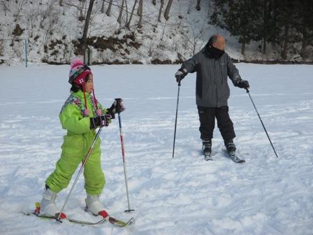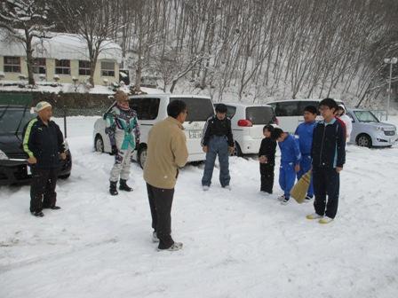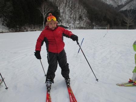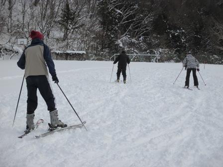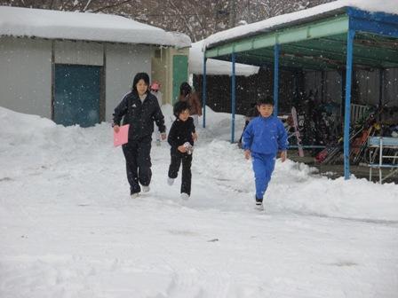 校庭スキーの3回目です。体育の冬季における地域教材として「スキー」を取り入れているわけですが、平地のアルペンスキーにも少し慣れてきたようです。今回は、ポールの周りを10分間スケーティングで滑り続けるという内容を取り入れ、各自何周回れたか記録を取りました。校庭の雪が踏み固められてくるに従い、技術もかなり向上してきたため、スケーティングが滑らかになってきました。最後には教師も一緒に入り定番のリレーを行いました。子どもだけでなく、経験の少ない教師たちも鍛えられてきました。互いのチームを応援する声が山に大きく響きます。楽しく苦しいスキー学習です。