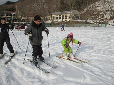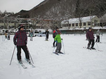 9月の栃木豪雨災害で本地区のスキー場が崩壊してしまい、全く使えない状態になりました。苦慮した結果、校庭でできる範囲で行うことになりました。しかし、この暖冬でなかなか雪が降らず流れていましたが、今回の2度の降雪でやっと可能となりました。校庭の雪を踏み固め、スケーティングの練習とリレーを行いました。ゲレンデで行うよりも運動量のあるスキーとなり、体育のめあてとしては十分な活動になったと思います。子どもたちの歓声が周りの山々に響き渡り、楽しくハードなスキー学習でした。