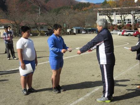 本年度は芹沢地区の土砂崩れのため、コースを変更しての実施となりました。運動会以来、じっと練習を続けてきた成果を発揮しようと、みんな張り切ってスタートしました。途中の声援を力に変え苦しさを乗り越えて力強くゴールする一人一人の顔には、満足感に満ちあふれているように感じさせるものでした。