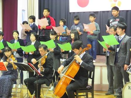 小中学校で合同となった学習発表会が今回で第2回となります。生活科や総合的な学習の発表、学級毎の楽器演奏や合唱、子供獅子舞などが発表されたり、音楽演奏家の生の演奏を聴いたりしました。子供たちにとっても、来ていただいた保護者や地域に方々にとっても、ご満足していただける発表会になったと思います。