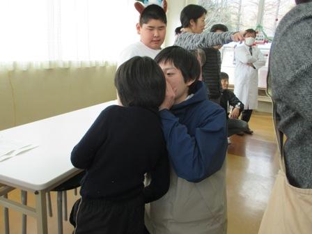 児童・生徒と職員が混じって2つのチームに分かれ、伝言ゲームを行うなどして楽しいひとときを過ごしました。 さて、伝言ゲームのブレーキになった人は誰だったでしょうか?