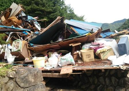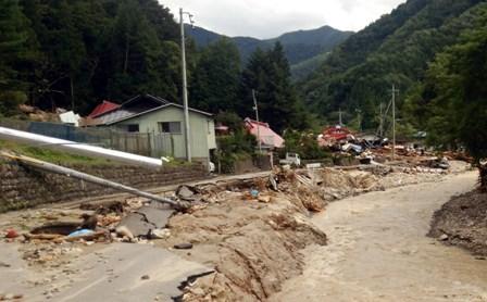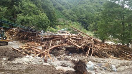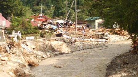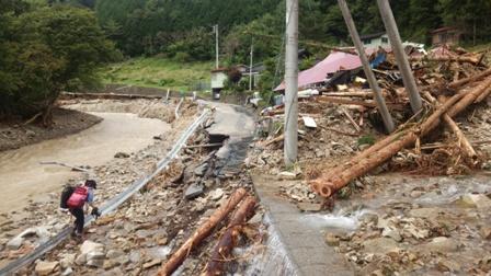 三依の芹沢地区は、先日の大雨でかなりの被害がありました。亡くなった人がいなかったことが奇跡のようです。本校児童とスクールバスの運転手さんのお宅もあり、どちらも無事とのことで安心いたしました。現在は、避難所に避難しています。また、川を挟んで向かいの山に亀裂が見つかり、現在も避難指示が続いています。(9月26日に避難指示が解除となりました)