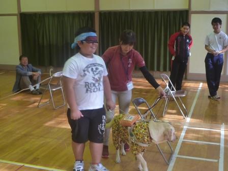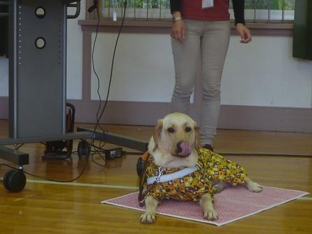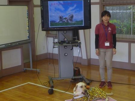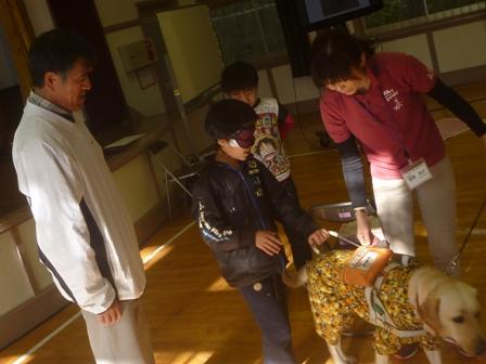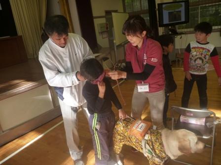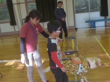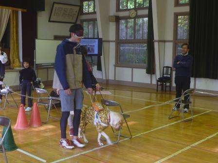 可愛いわんちゃんを迎えての盲導犬教室が、子どもたちのワクワクした期待感を漂わせて実施されました。教室では、盲導犬協会の方から、盲導犬を必要としている方の障害がどのようなものなのか、盲導犬がどのように役に立つのか、盲導犬はどのように育てられて訓練されているのか等、具体的に詳しく説明していただきました。また、実際に訓練の様子をやって見せたり、子どもたちに体験歩行をさせてくれたりしていただき、子どもたちは障害のある方の立場に立って盲導犬というものを考えることができました。福祉教育の充実のため、より人間的な立場に立ってすべての方々に優しい心を向けられる子供たちを育てていきたいと思います。