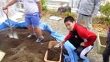 農園活動で秋植えのキャベツとブロッコリーを、児童たちが力を合わせて植えました。最初に、子じか教室でお世話になっている地域のボランティアの方々と一緒に、ほぐした土に肥料を混ぜたものを、協力し合ってプランターに入れました。次に、教えていただきながら苗を上手に植えました。同時に、簡単なビニールハウスを教師が制作しながら、最後にプランターをその中に入れました。三依の寒さに負けないように、苗の成長を見守って行きたいと児童たちは誓いました。