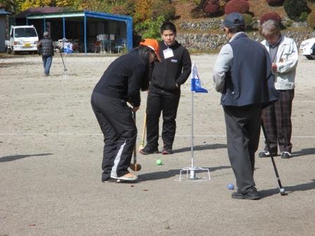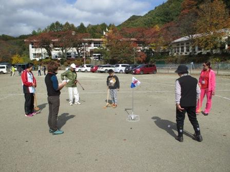 毎年恒例の行事となっている高齢者の方との「ふれあいグランドゴルフ」を晴天のもと開催いたしました。三依支所のおじか大学の方々が、毎月大会を開いており、それに本校の児童と職員が混ぜていただく形で行いました。ともにグランドゴルフをしながら、プレーについて教えていただいたり、児童・生徒や職員と楽しくお話ししていただいたりしました。参加者は、みんな「楽しかった」、「良かった」と口々におしゃっていました。