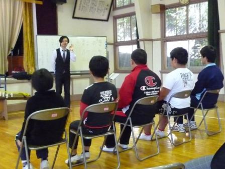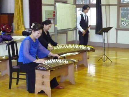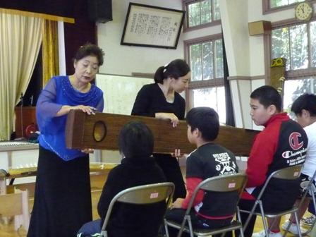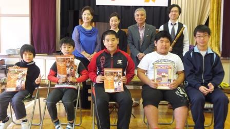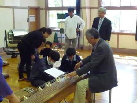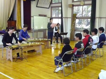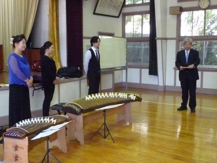 日本を代表する邦楽家の和久先生方をお迎えして、楽しく日本の伝統文化に触れるスクールコンサートを行いました。お琴の演奏、尺八の演奏と楽しいお話、さらに伝統的な曲から子どもたちに身近な曲までご披露いただきました。また、会場には和久先生に師事し、三依中学校の同窓会長である「阿部喜好」さんもお見えになり、子どもたちや教職員にもご指導いただきました。さらに、実際に尺八やお琴の体験をさせていただいたり、薄井先生の歌とのコラボもあったり、とても感動的でした。2時間の盛りだくさんでまったく飽きさせない充実した内容に、皆大満足のコンサートでした。来年は私(校長)とのコラボもと和久先生にお願いして、邦楽スクールコンサートは終了となりました。