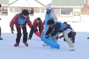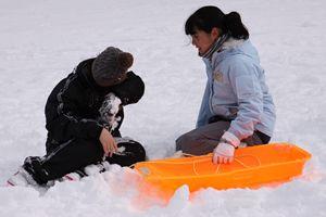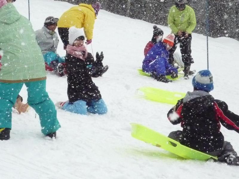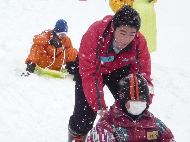 駅前のファミリースキー場を借りて、雪遊びを楽しみます。