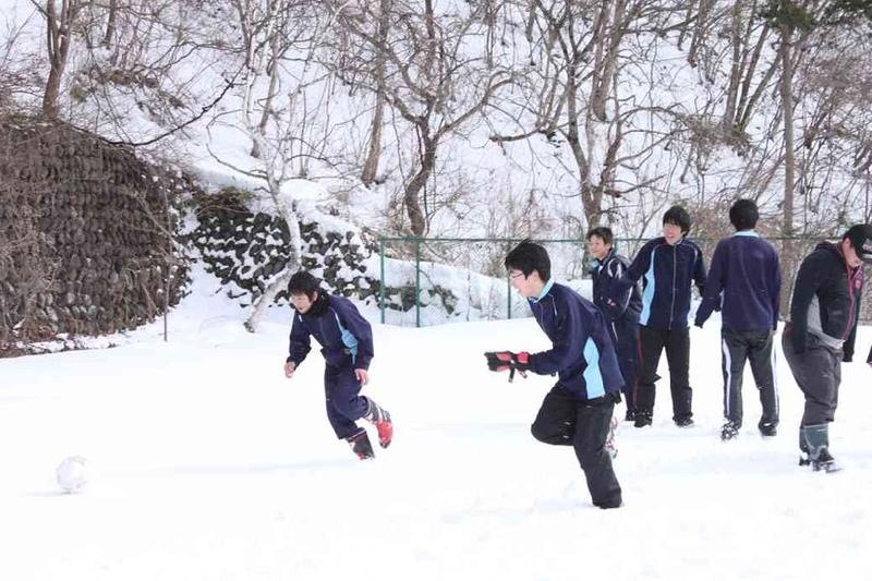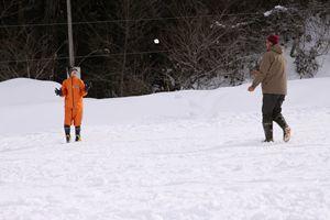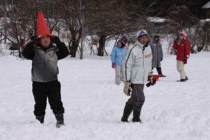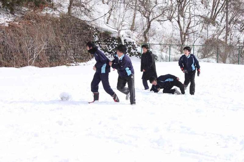 こちらでは雪合戦も みんな雪で遊んで楽しそうです