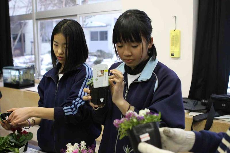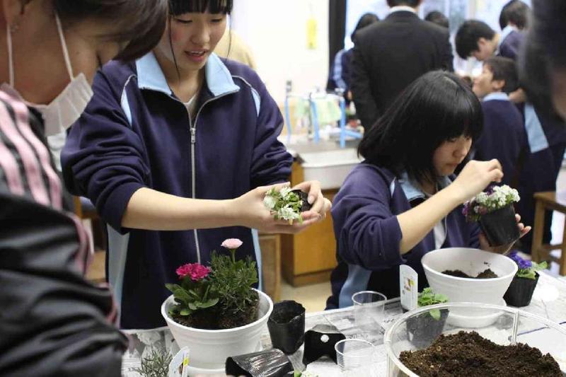 自分で好きな花を選び、配置 楽しそうですね♪ こちらは真剣な表情です!!