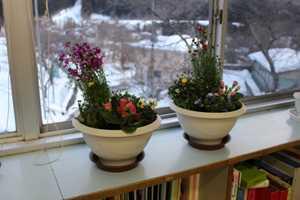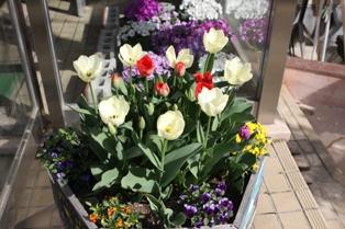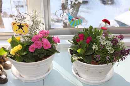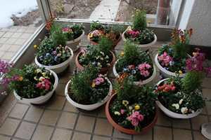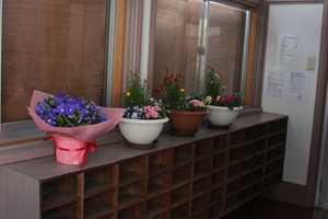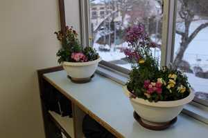 できあがった寄せ植えは、各教室と玄関に飾りました。