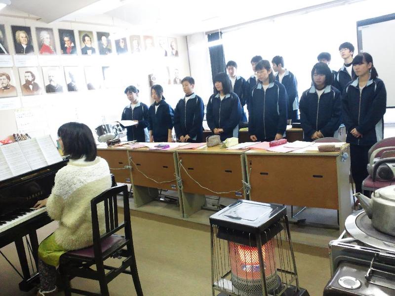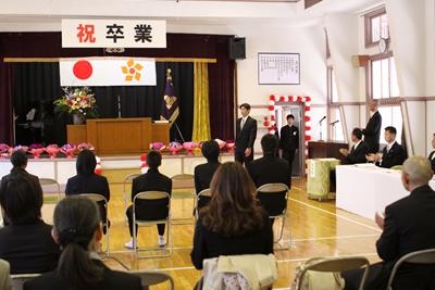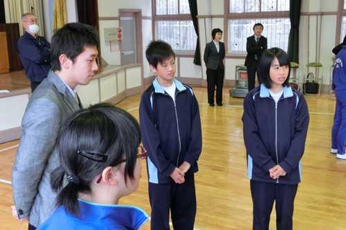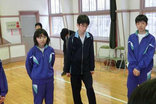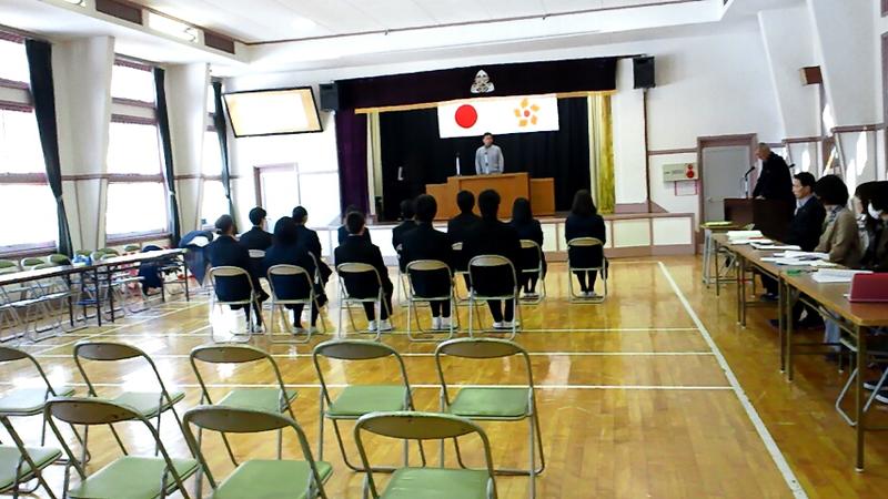 3年生が入学の胸章をつけています。 小学生一名、中学生一名の入学です。
