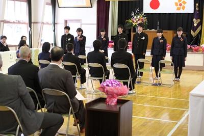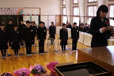 さすが卒業生。すばらしい立ち振る舞いです。 涙をこらえながらの送辞。 感謝の気持ちのこもった答辞。