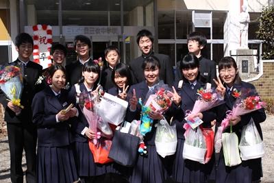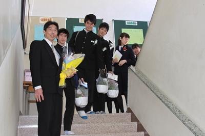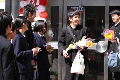 最後に全員で「旅立ちの日に」を歌いました。 担任・副担任と。 後輩に笑顔で別れを告げる卒業生。