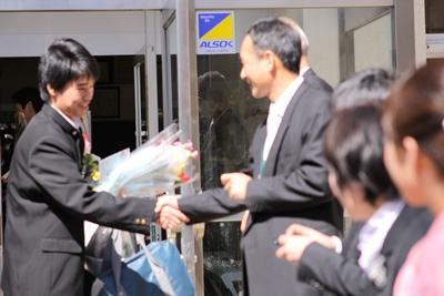 「先輩、頑張ってくださいね~!!」 先生方とも握手をしてお別れです。 お母さんと腕を組んで♪大きくなりました。
