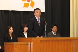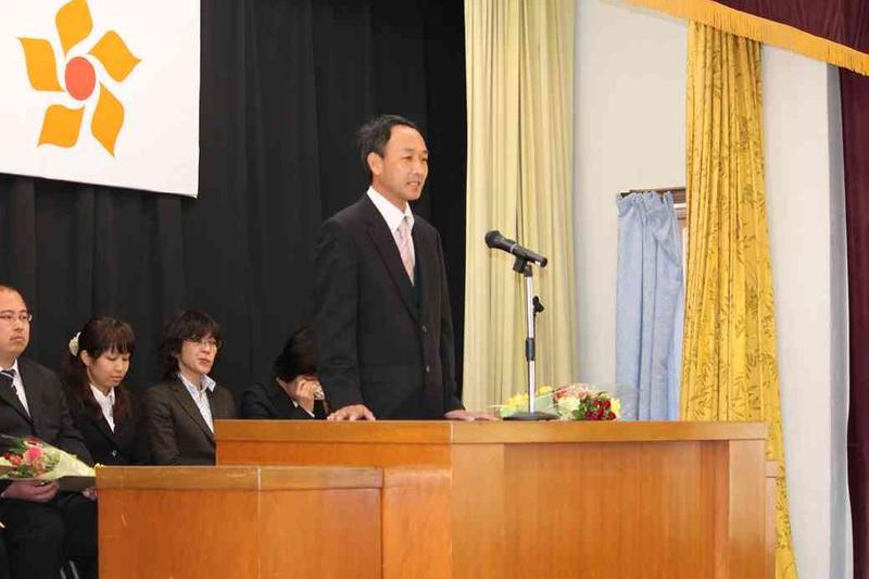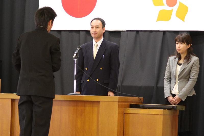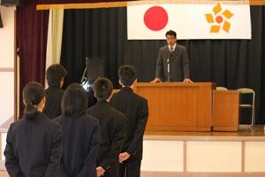 小中併設校としてスタートしました。 新任式 生徒代表が歓迎の言葉