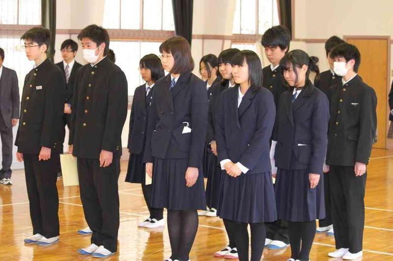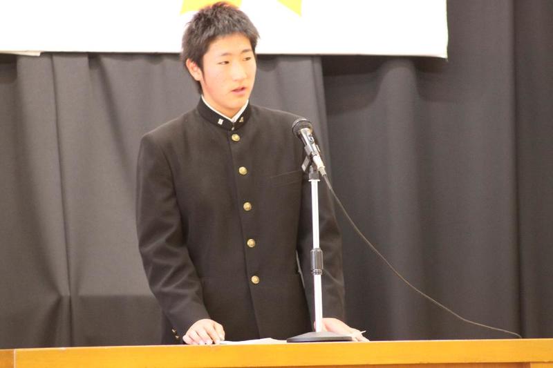 担任発表 生徒たちはドキドキしな 始業式での生徒の意見発表
