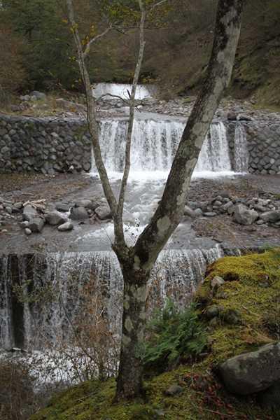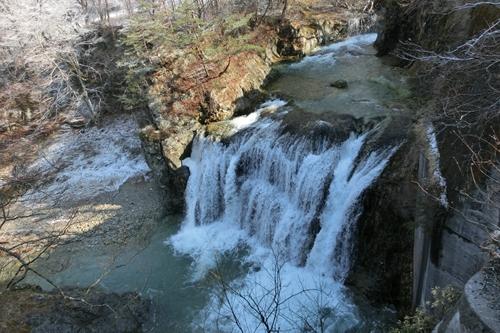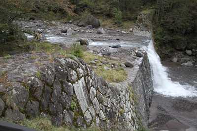 こんな見事な放水が見られました。 うご神体を見せてもらうところです。 らの導水路です。