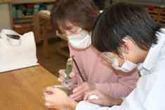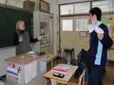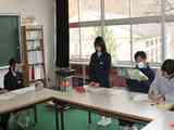 1年生は歴史の授業です。 3年生は理科で一緒に実験を行いました。