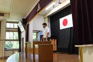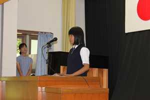 生徒の意見発表 宗平君 悠馬君 夏休みの目標に再挑戦