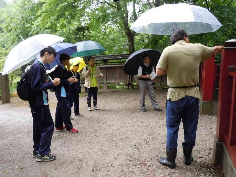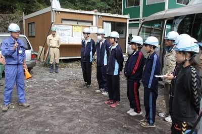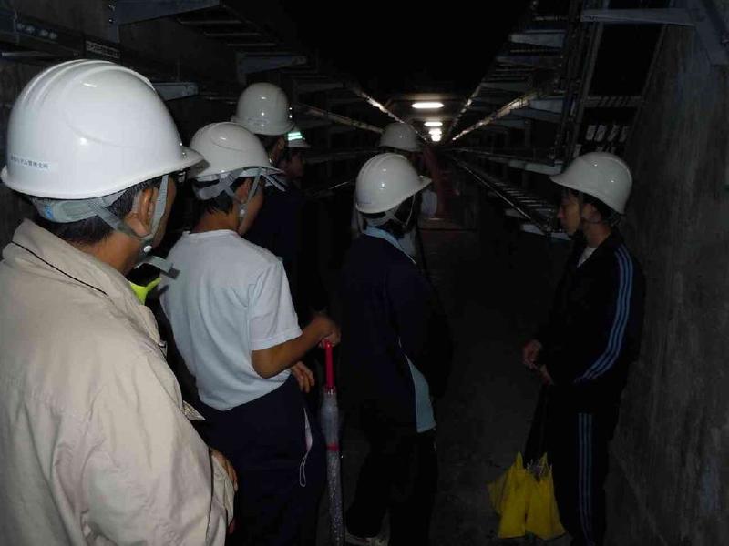 分祀されている赤間神宮の説明を ダム内部の点検通路を歩いていま 職員の方の熱心な説明に、生徒の
