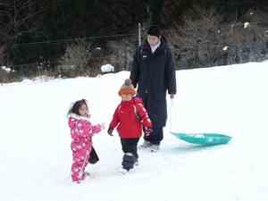「はい」という力強い返事が素晴らしい。 雪道では車に気をつけましょう。