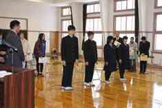 中学生五名となりました。これから一年間、力を合わせて学校生活を充実させていきたいと思います。