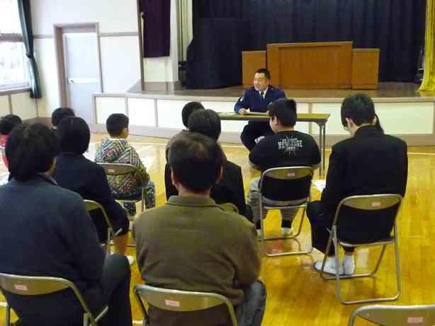 三依駐在所の福田巡査部長をお招きし、防犯に関するお話をいただきました。