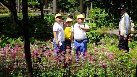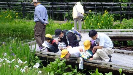 (植物園入り口にて) (観察した植物を記録) (水の中に何かいるぞ!)