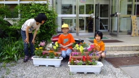 今年度は、プランタ-に植えました。植えた苗は、キュウリ、ミニトマト、カボチャ、スイカの苗で