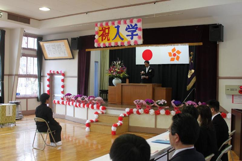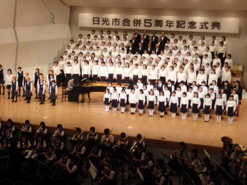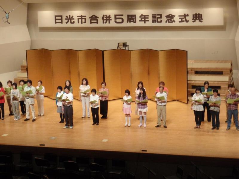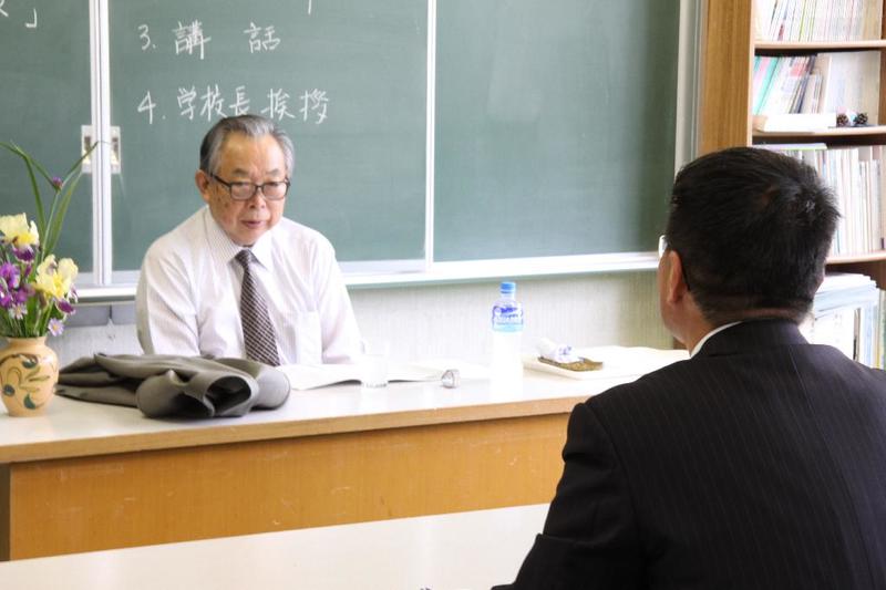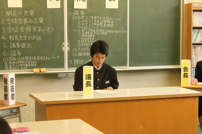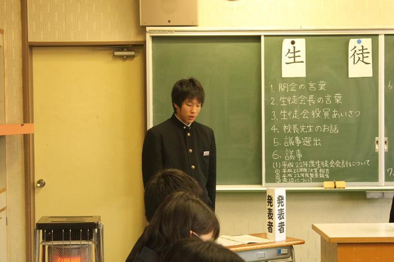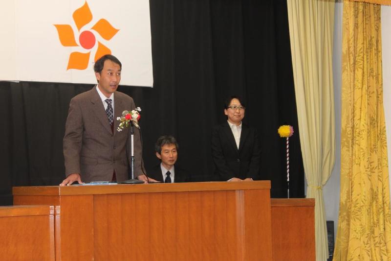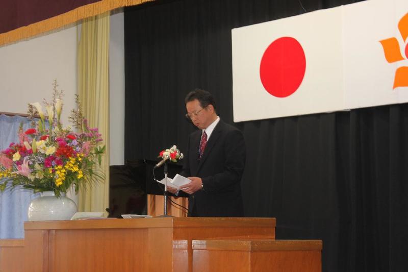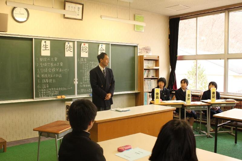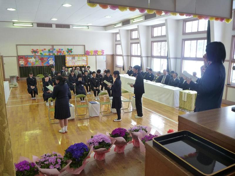 市の歌斉唱 「男体山は陽に映えて・・」 校長挨拶「スモールステップでいきましょう」 生徒意見発表「マスメディアはこわいものです」