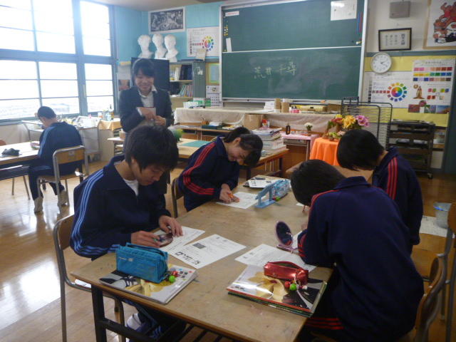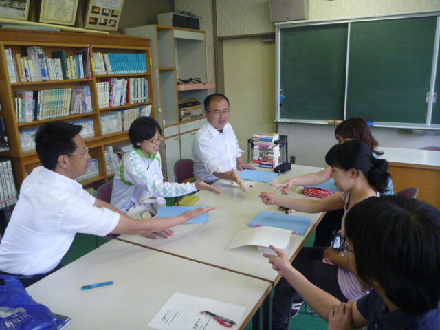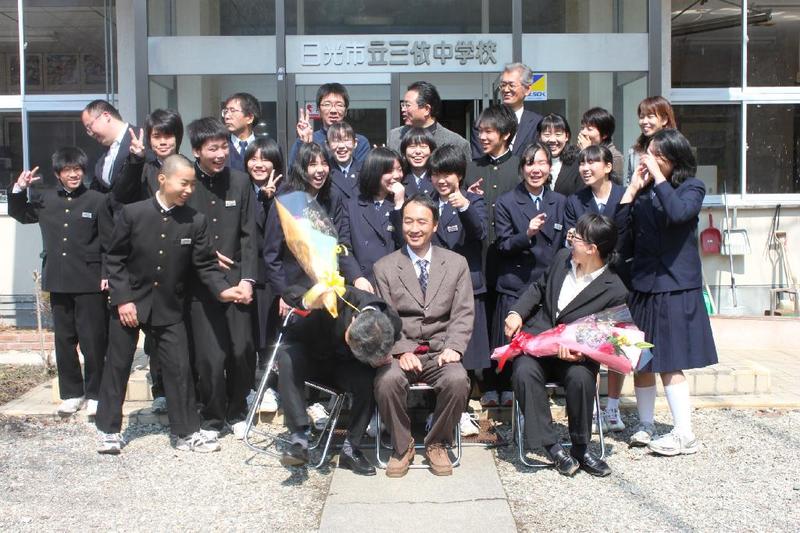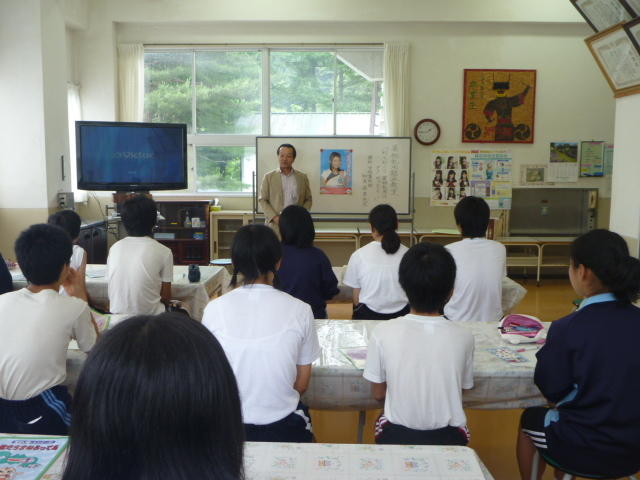 バレーボールの後、校長室で一人一人に、サインを書いてくれました。「三依中は本当にすばらしい学校です。みんなの和に感動しました」と明るく語ってくれました。また、「輝け!日本女子シッティングバレーボール」という本を寄贈いただきました。