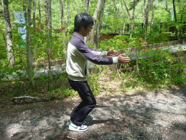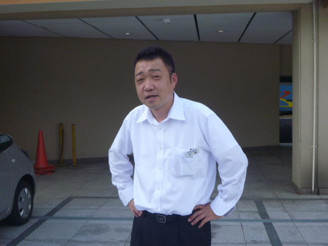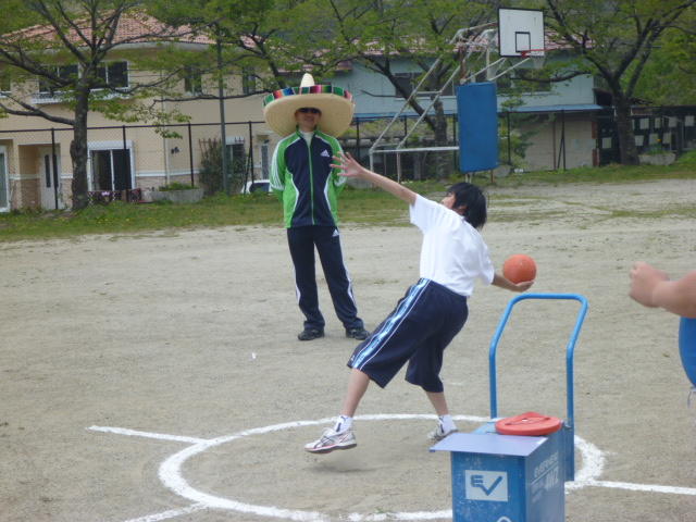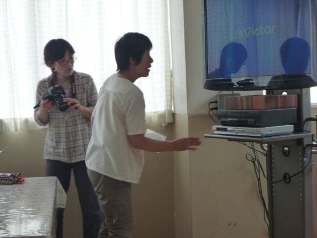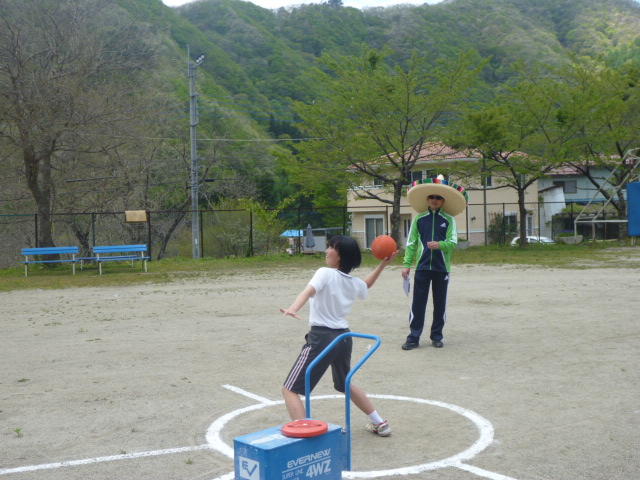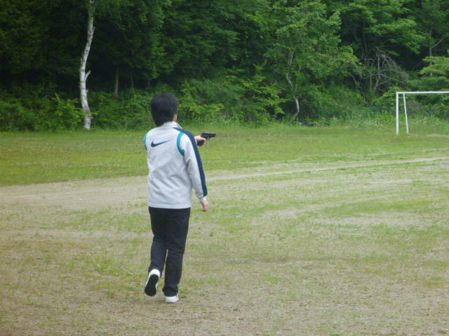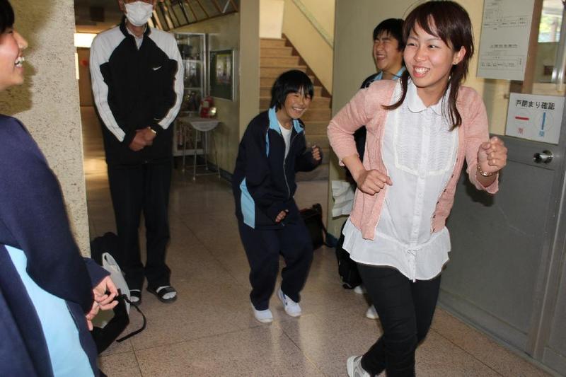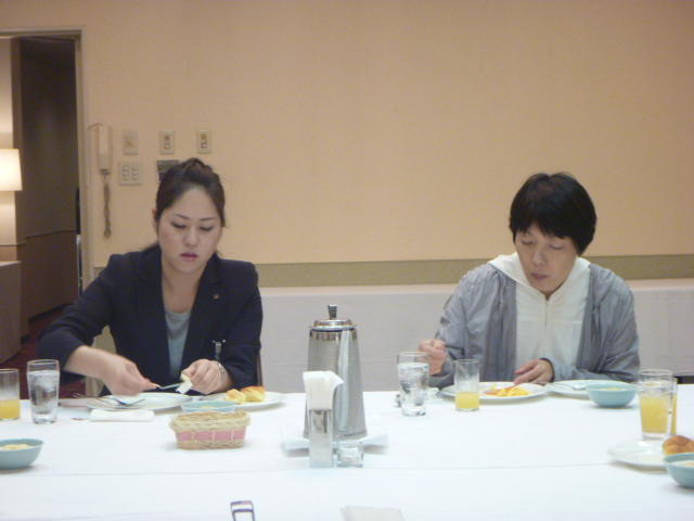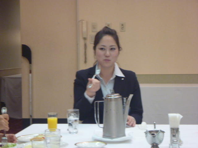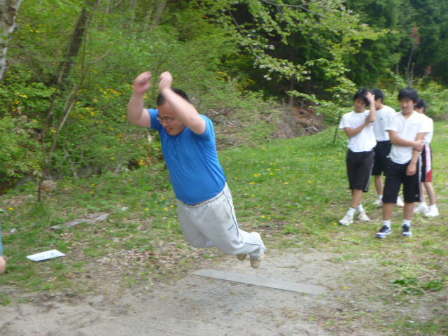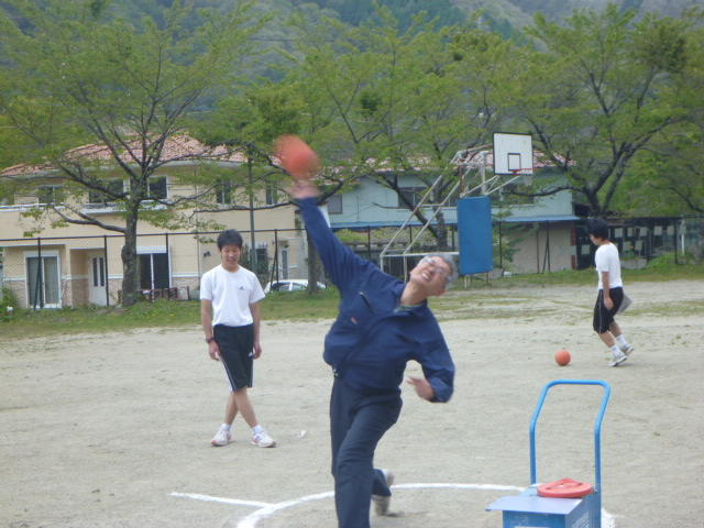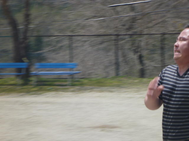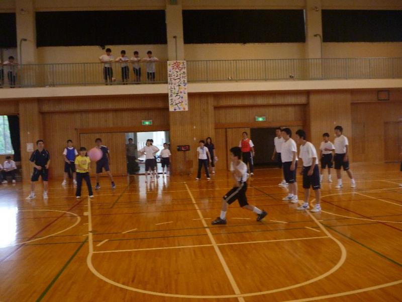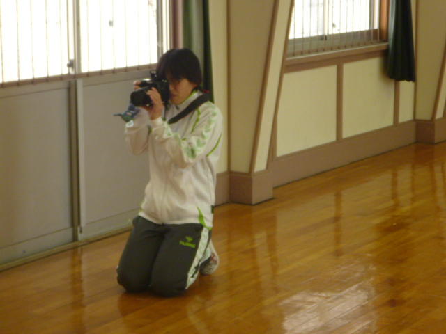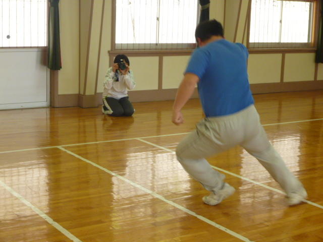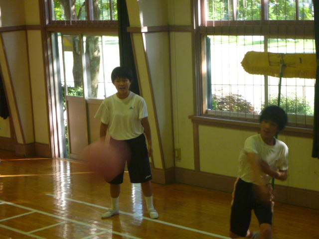 金田さんの強烈なスパイクに逃げ腰のI君。 「合宿とアジア大会頑張ってください。」 金田さん、ありがとうございました。