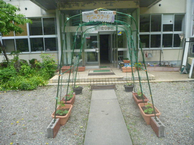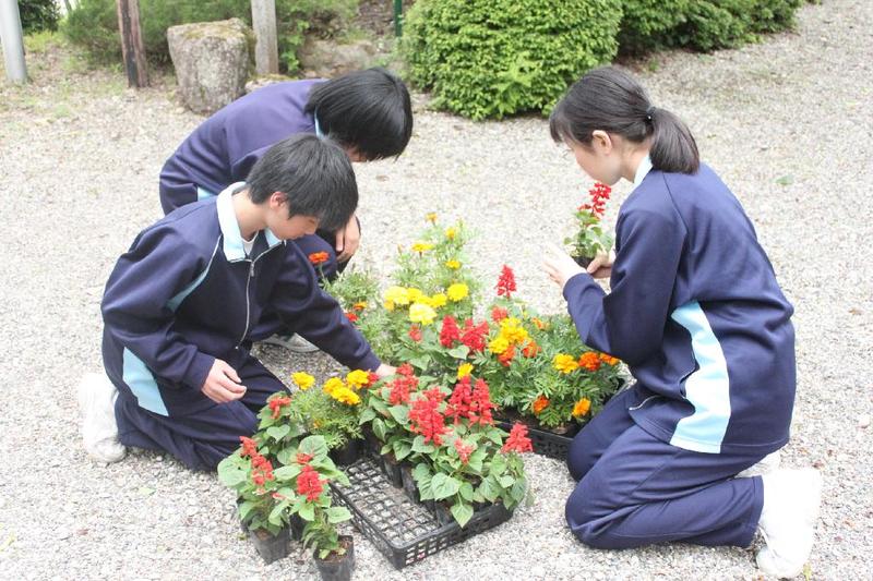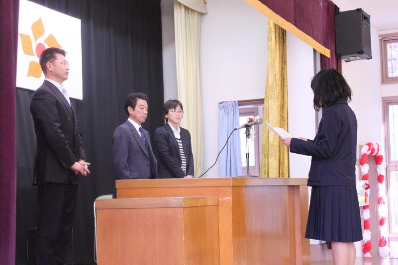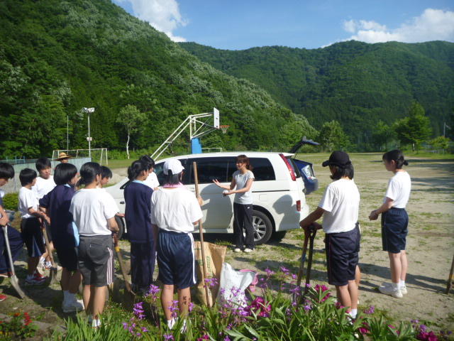 株式会社コメリでは、この大地が美しい花や緑の木々にあふれ、いつまでも豊かで平和な世の中であってほしいという願いのもと、毎年利益の1%を地域へ還元しているそうです。三依中学校でも毎年3万円いただいています。子どもたちは花壇に草花を植えて、花が咲いたり、作物が収穫できたりするのを楽しみにしています。今日はわざわざ郡山から目録を届けに来てくださいました。