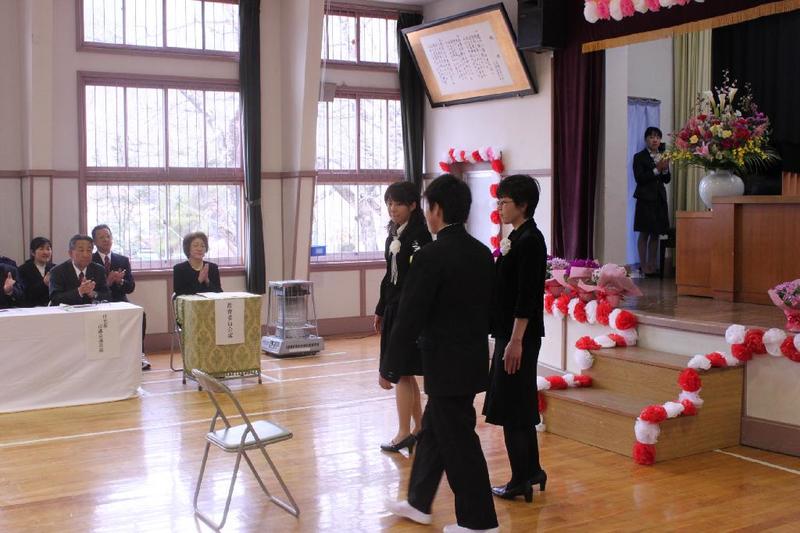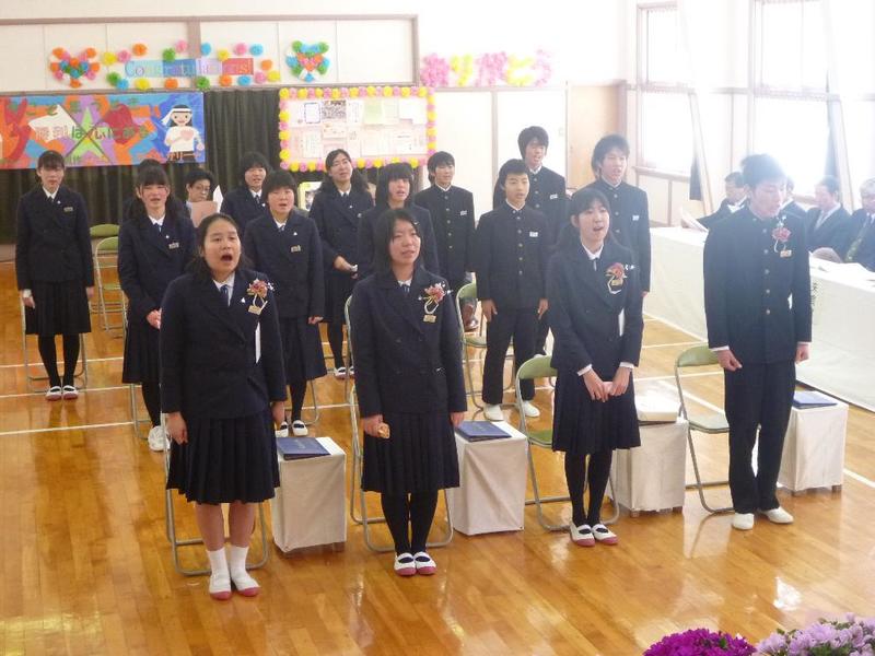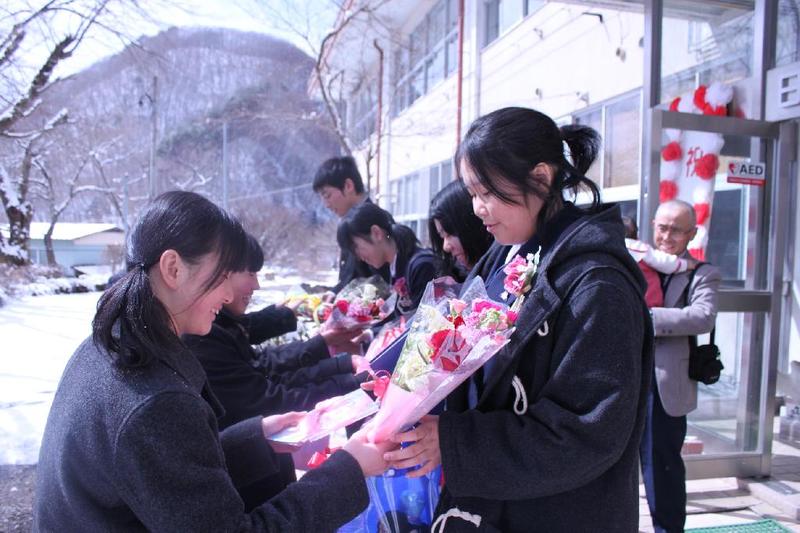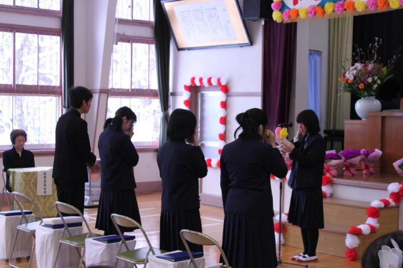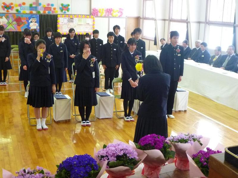 下級生から、お花を贈呈 全員合唱は涙、涙・・・