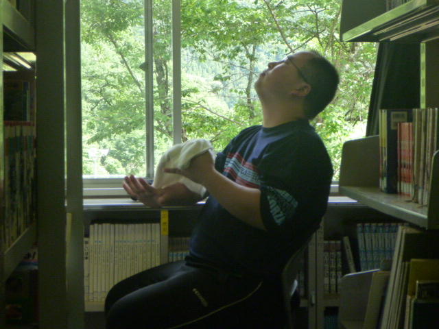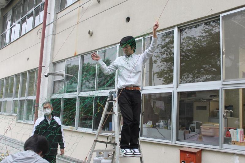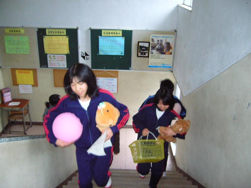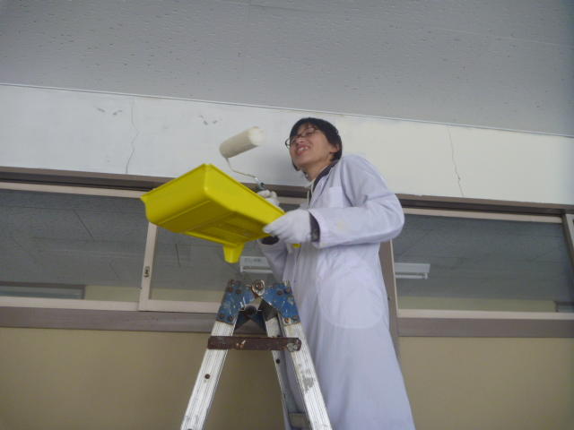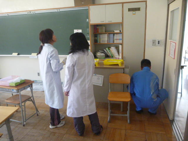 女子は理科室前を 教頭も豪快に 「ぼくはひとやすみ」