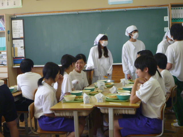 班ごとに、昼食を一緒に食べました。