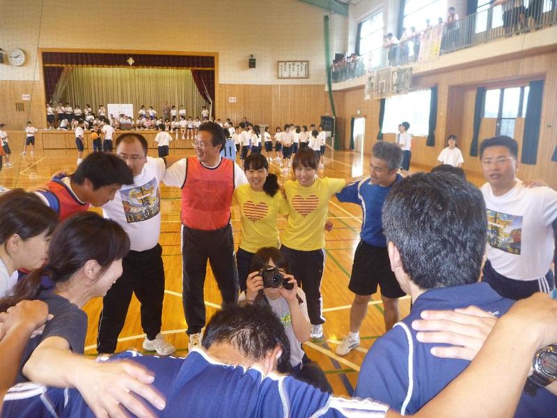 最後にみんなで「がんばりました」 余裕の笑みを浮かべる鷹を飼っている専門部長 県大会でも優勝を果たした今市中の先生