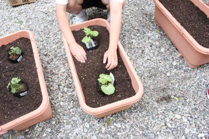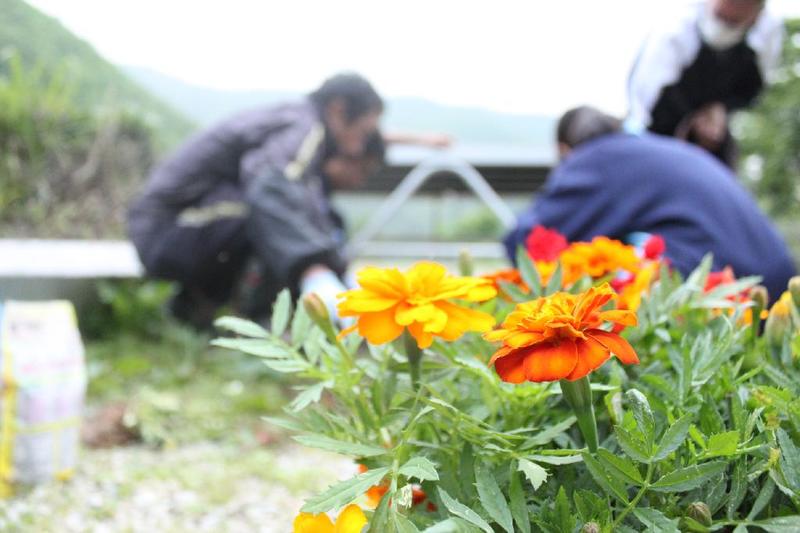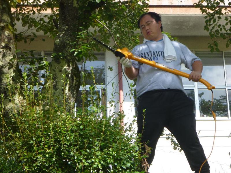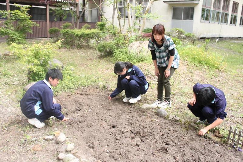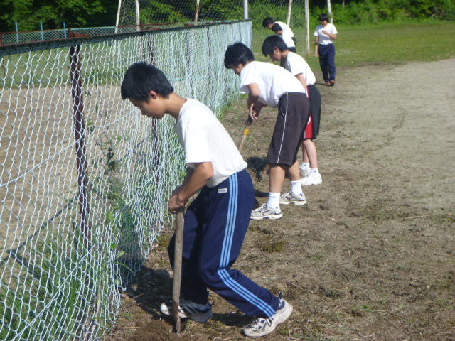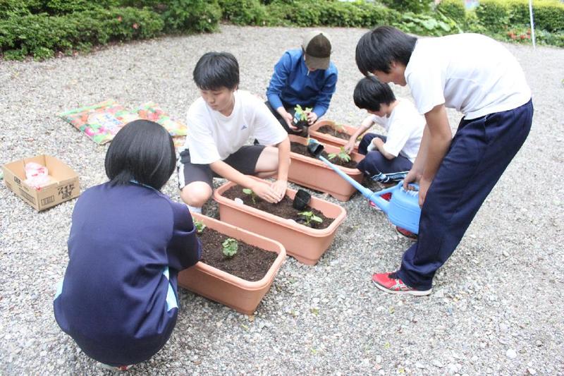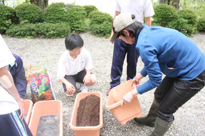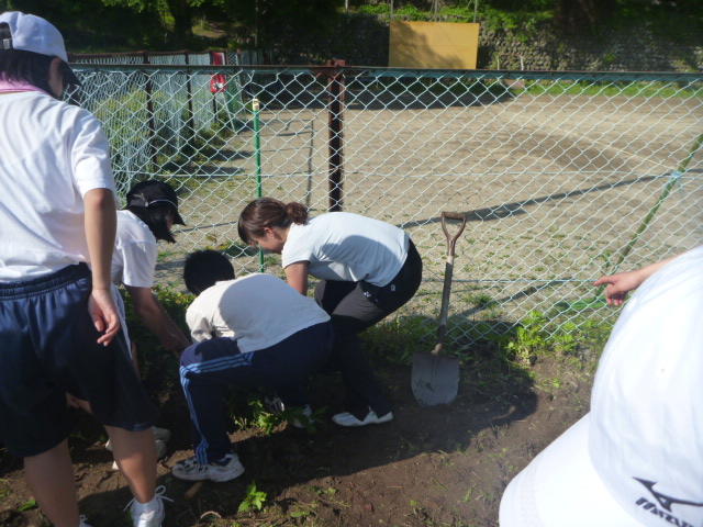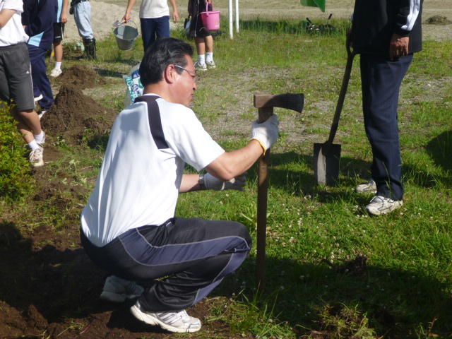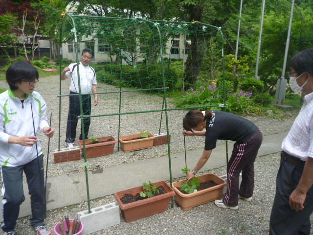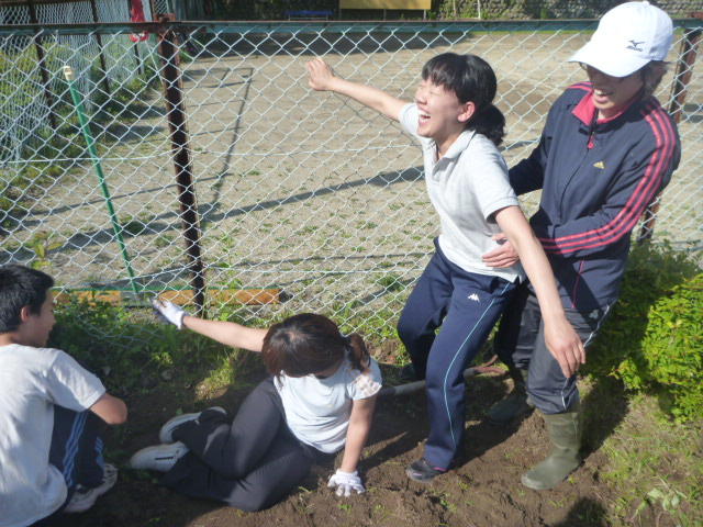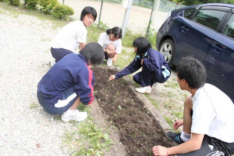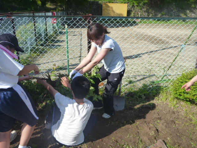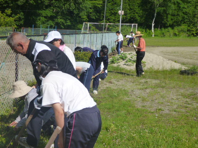こつこつと、花壇をきれいにしています 男子生徒も一生懸命 保護者の方も