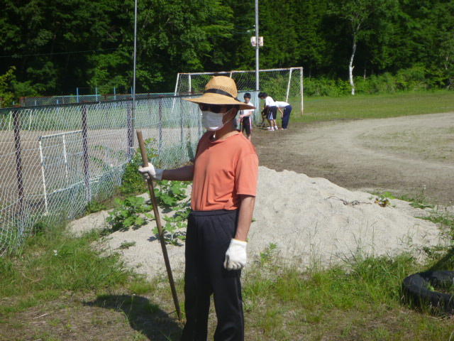 ビンもこんなに集まりました 続いて、奉仕作業 校庭は、一面 緑の絨毯