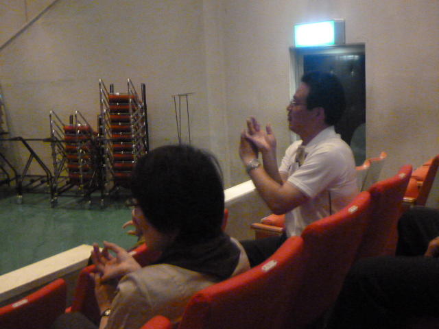 ステージも、準備OK 歌の練習もしました。「白い光の中に・・」 「やまなみは萌えて・・」