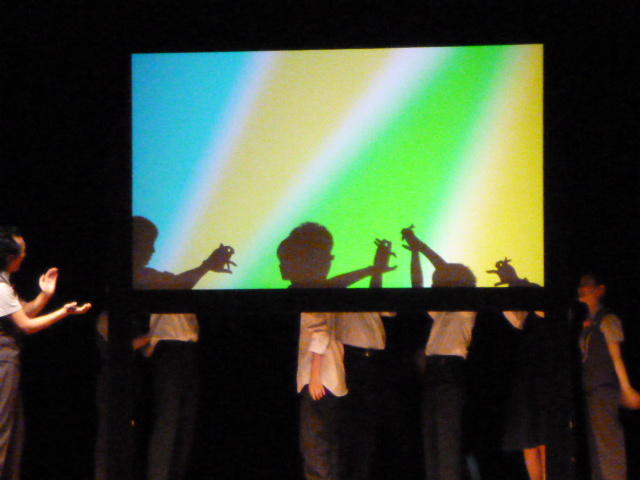 真っ暗な講堂では、突然”魔王”が流れ ダースベイダーが きゃー怖い、逃げろ