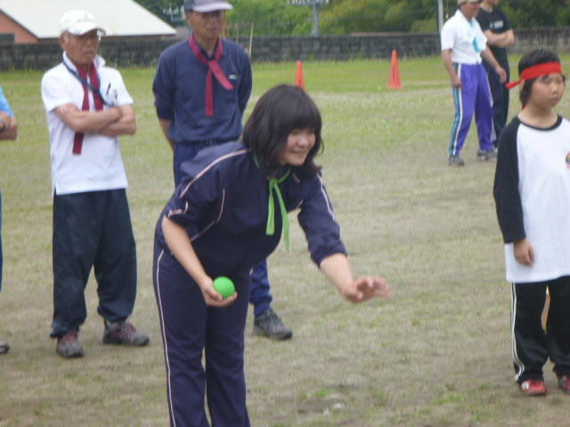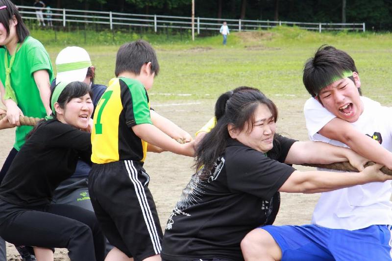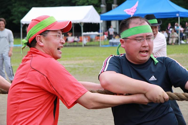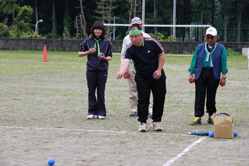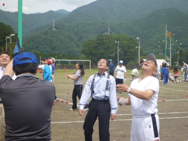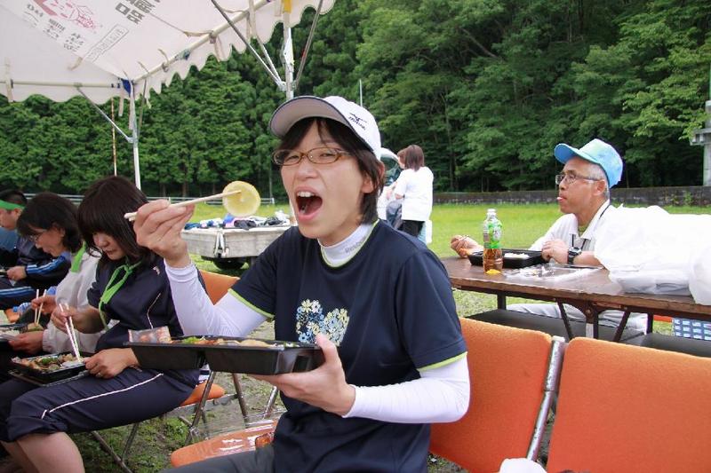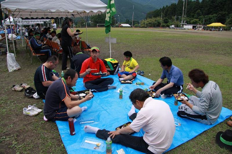 副支部長の山口さん 会計監査の阿久津さん 「うまい」 食べた後は運動 元気な子どもたち。一人は大人