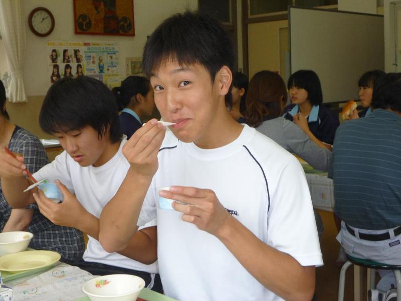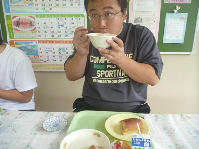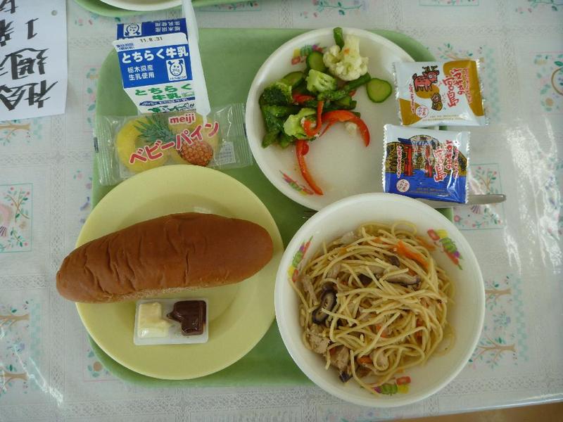 バスケットボールぐらいです 久しぶりの給食。好物のスパゲティー 「手を合わせてください。いただきまーす」