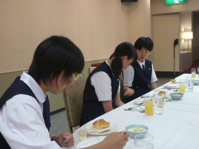 朝の打合せをする、専門部長と副部長。 開会式に臨む三依の3選手 顧問の未華子先生から試合前のアドバイス
