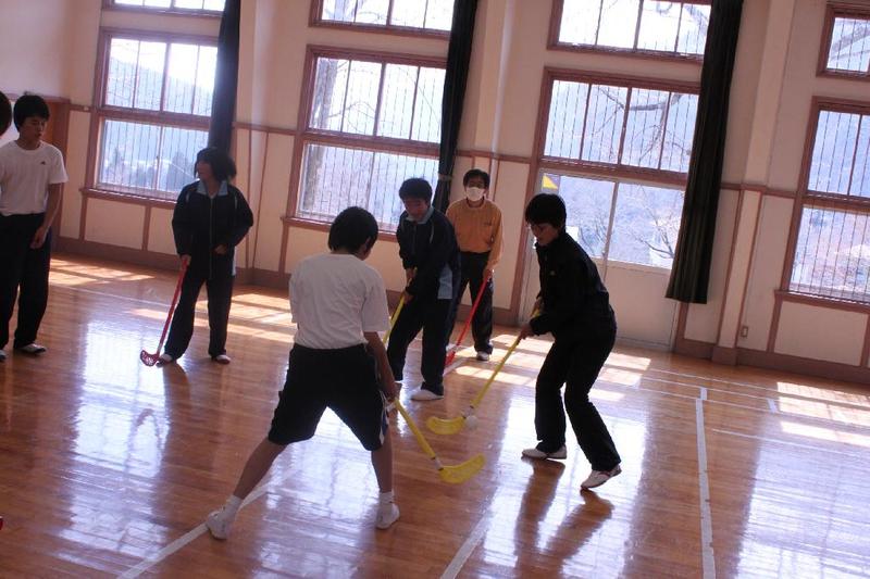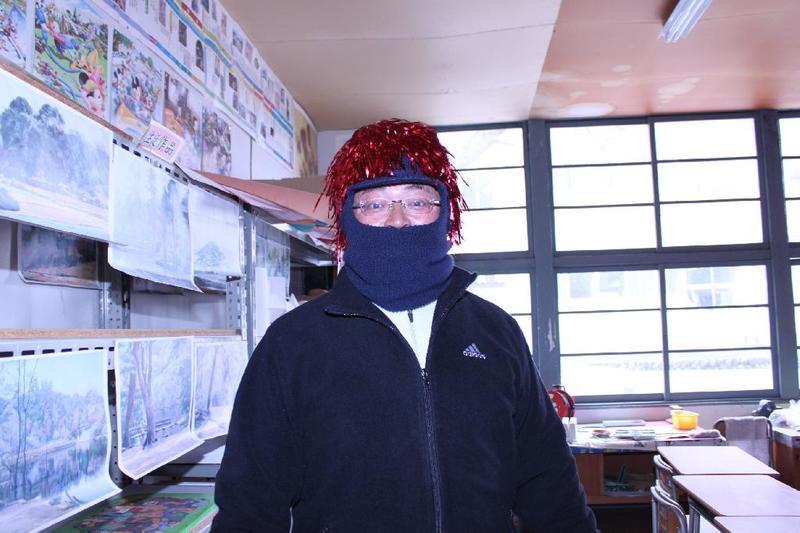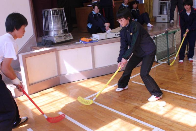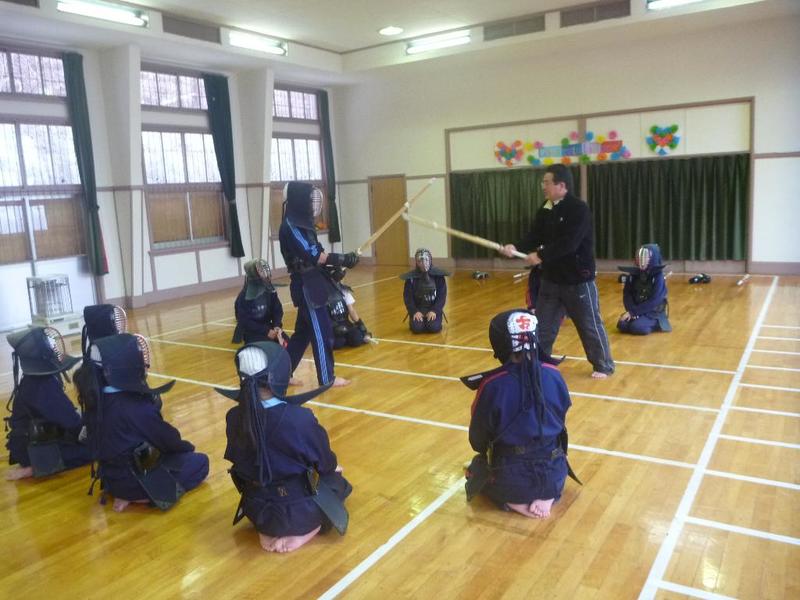 今日も激しく雪が降っています 講堂では、剣道の授業。もちろん裸足です。 女子も激しく打ち合います