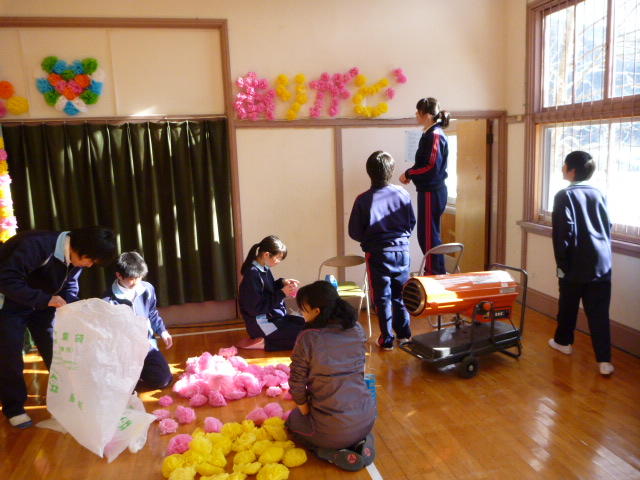 10日の卒業式に向けて、1,2年生が心を込めて準備しました。