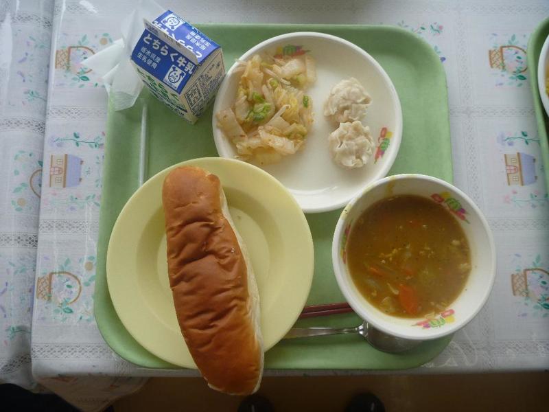 今日の給食は、パンと牛乳だけです。 今まで、あたり前に食べていましたが。 これだけでもありがたいですね。