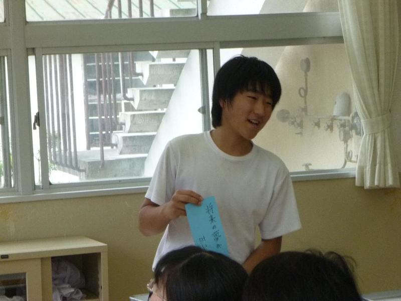 市教委の方々 「集合してください」 市内の中学2年生 40名が参加します 教育長挨拶 「元気ですか」