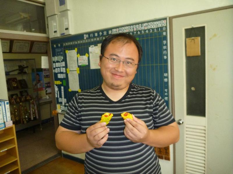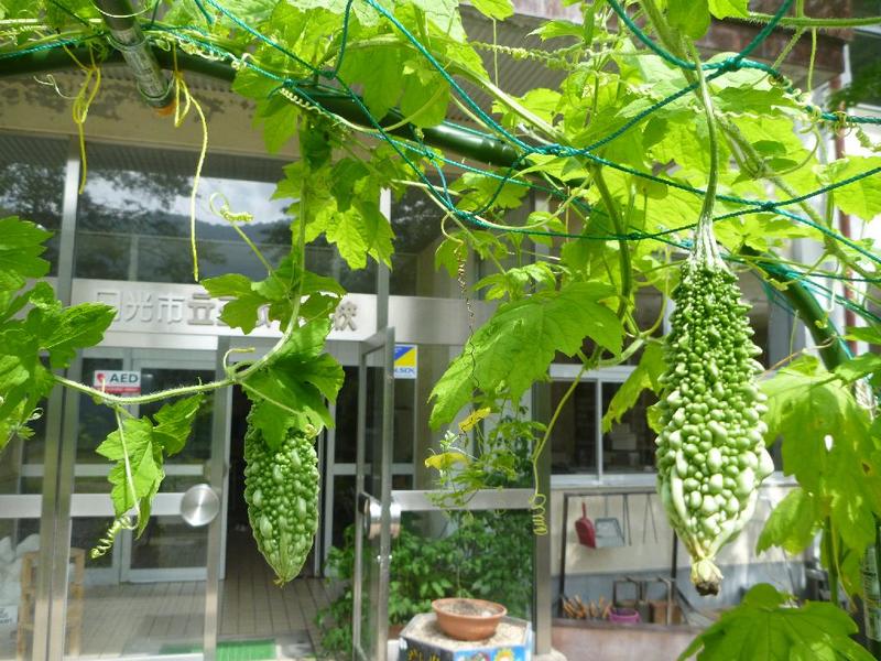 完熟ゴーヤを手にする☆教諭